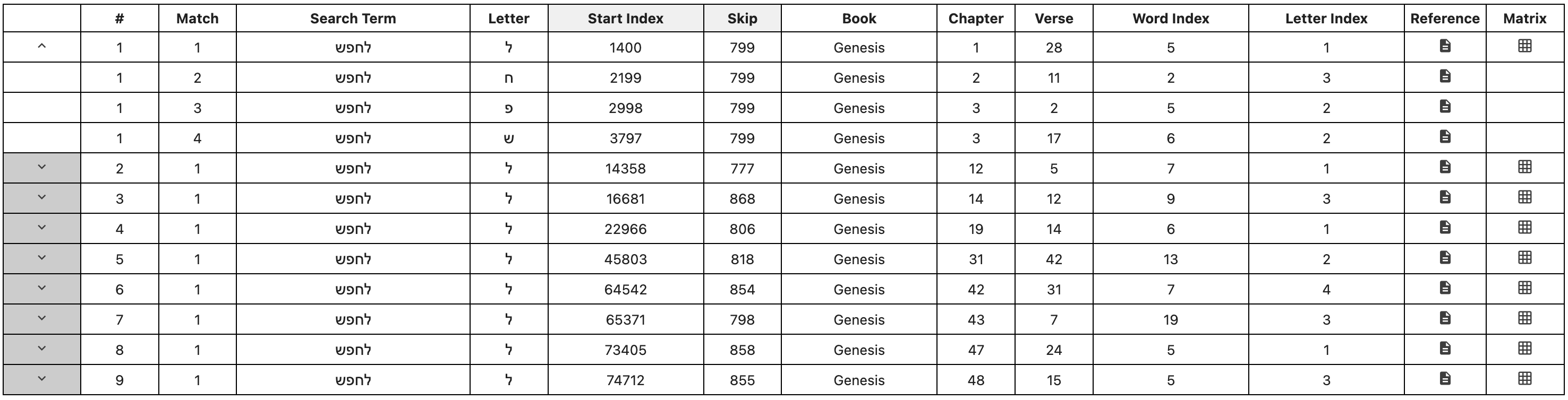 Take a look at this section to quickly understand how to search for ELS codes in the Hebrew Scriptures!